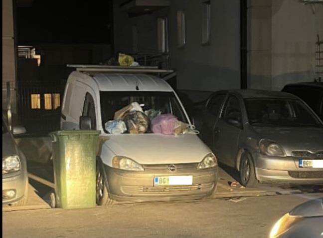 Priložena je i fotografija, a na automobilu se mogu videti kese sa đubretom.