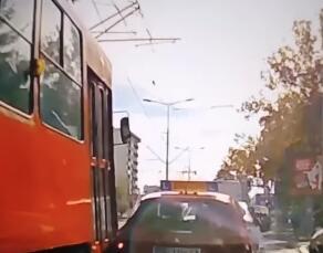 Iako je tramvaj, zapravo, očešao automobil koji je bio preblizu šinama, došlo je i do značajnog udarca.