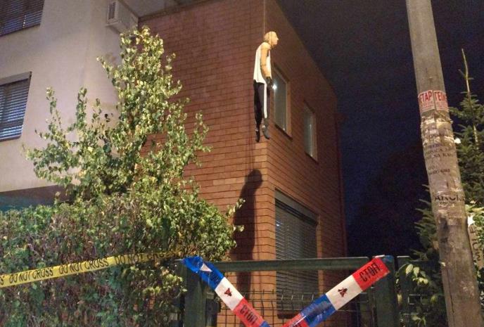 Kako je vidi na snimcima i fotografijama objavljenim na društvenim mrežama, ova dekoracija prevazišla je sve ostale u Srbiji i Beogradu po tome koliko je sablasna. U pitanju je lutka čoveka koja je obešena o banderu!