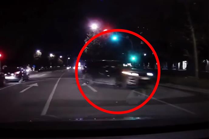 Na snimku se vidi kako vozač prelazi u suprotan smer, a zatim dijagonalno preseca vozila koja mu idu u susret od kojih jedno u trenu uspeva da izbegne.