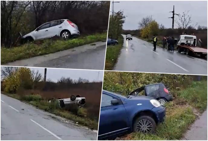 Kako se vidi na snimku do kog je došao Kurir, tri automobila su sletela sa puta, a jedno vozilo se prevrnulo na krov.