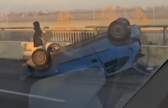 Tako je na obilaznici Zemun - Borča, najverovatnije zbog poledice, došlo do prevrtanja automobila koji je završio na krovu.