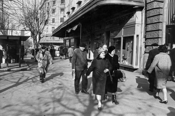 Pored gvozdene ograde stajao je milicioner i čuvao ulazna vrata od nasrtljivih kupaca.