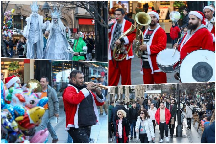 Najveselije je u Knez Mihailovoj, gde trubači obučeni u kostime Deda Mraza uveseljavaju prolaznike, a ima ih na nekoliko tačaka glavnog šetališta.