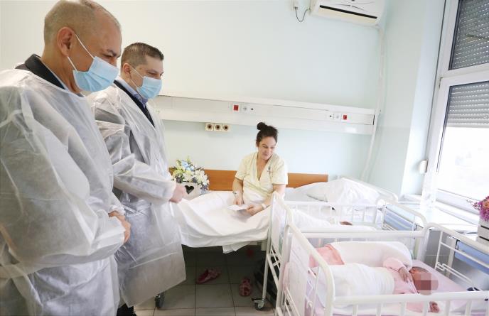 Član Privremenog organa Grada Beograda Nikola Nikodijević i vršilac dužnosti gradskog sekretara za socijalnu zaštitu Petar Jordanov obišli su danas provorođenu devojčicu i dečaka u 2024. godini u Ginekološko-akušerskoj klinici u Višegradskoj.