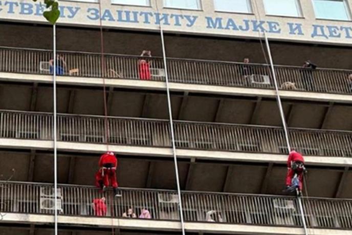 Pripadnici Specijalne antiterorističke jedinice (SAJ) spustili su se užadima sa krova Instituta za majku i dete obučeni kao Božić Bate i obradovali poklonima mališane koji leže na Institutu.