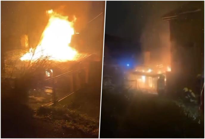 Na snimku se vidi da se vatra razbuktala i da plamen "guta" ceo objekat. Srećom, vatrogasci su došli veoma brzo i sprečili da se vatrena stihija proširi na sudednu veću kući.