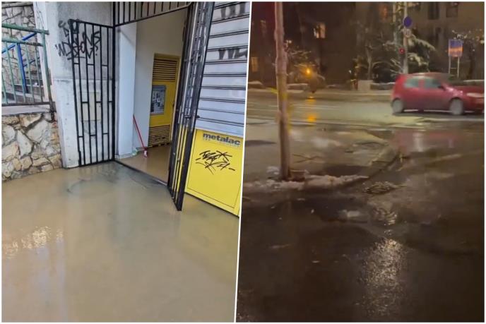 U centru Beograda, pukla je cev a voda se slila sve do lokala kod okretnice tramvaja u Ustaničkoj.