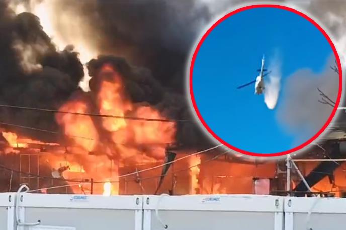 Kako javljaju reporteri Kurira sa terena, vatra sada još jače kulja i širi se i na druge objekte, a čuju se i eksplozije. Stigao je i helikopter, a snimak pogledajte ovde.
