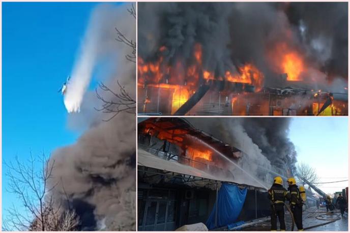 Veliki požar izbio je jutros u kineskom tržnom centru u Bloku 70, u Novom Beogradu.