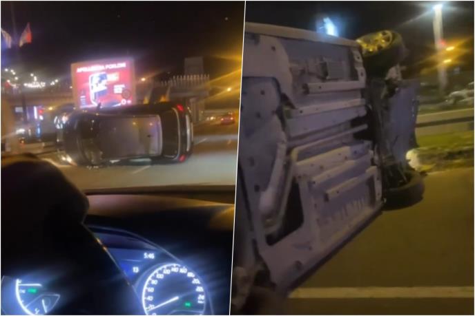 kako se vidi na snimku obajvljenom na stranici serbialive_beograd, jedan auto prevrnuo na bok, a staklo i delovi vozila su rasuti svuda po putu.