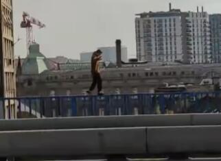 Mladić se kreće poput cirkuskih akrobata koji šetaju po žici, a na sreću ne gubi ravnotežu. Snimak je zastrašijući, a motivi nisu poznati.