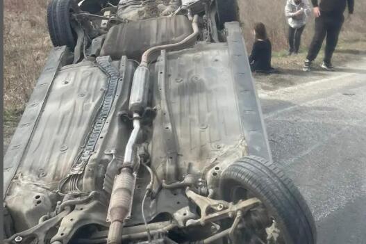 Na fotografijama se vidi i kako devojka, očigledno u šoku, sedi u travi pored puta. Ispred prevrnutog automobila vidi se drugi manji auto iz kog su putnici izašli da pruže pomoć.