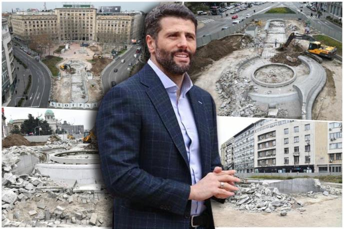 Predsednik Privremenog organa Grada Beograda Aleksandar Šapić i glavni urbanista Marko Stojčić obišli su radove na rekonstrukciji Trga Nikole Pašića započete 26. februara.