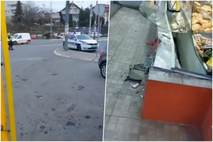 Automobil je odvalio komad betona u pekari. Zaposleni uveliko sređuju pekaru i uklanjaju srču i posledice udara auta u vitrinu sa pecivom.
