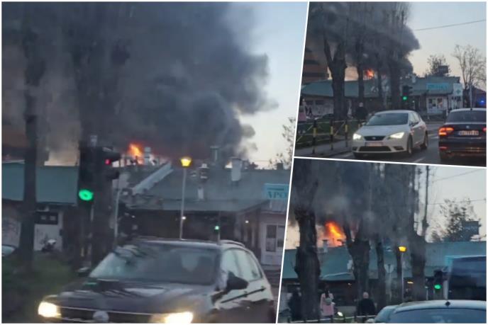 SNIMAK DRAMATIČNOG POŽARA U KAFANI KOD TC STADION: Čak 15 vatrogasaca se bori sa buktinjom (VIDEO)