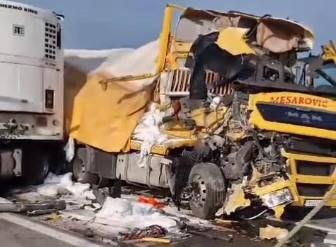 Novi snimak posle stravičnog sudara kamiona koji se u ponedeljak popodne desio kod Dobanovačke petlje pokazuje da, samo usled srećnih okolnosti, nije bilo stradalih.