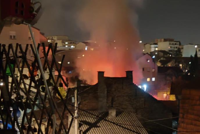 NaslovnaVestiBeogradPožar na ZvezdariBeogradČULA SE EKSPLOZIJA, BUKNULA VATRA: Požar na Zvezdari, gori kuća (FOTO) Kurir WebČet, 14.03.2024. 20:44h → 21:18hKomentarišiFoto: Kurir Požar je večeras izbio na Zvezdari. Prema prvim informacijama, vatra je buknula u kući u Ulici majke Kujundžić. Foto: Kurir Kako prenose očevici, čula se i eksplozija. NE PROPUSTITEBeogradPOŽAR U RAKOVICI! Gori stan na Kanarevom brdu, vatrogasne ekipe na terenuBeogradZAPALILA SE GUMA NA AUTOBUSU 511: Svi putnici bezbedni, izašli odmah, vozač reagovao protivpožarnim aparatomBeogradSNIMAK DRAMATIČNOG POŽARA U KAFANI KOD TC STADION: Čak 15 vatrogasaca se bori sa buktinjom (VIDEO)BeogradVELIKI POŽAR NA ADI HUJI: Vatra i dim se vide sa velike razdaljine, objavljen dramatičan snimak (VIDEO) Bonus video: Banjica požar Izvor: Kurir