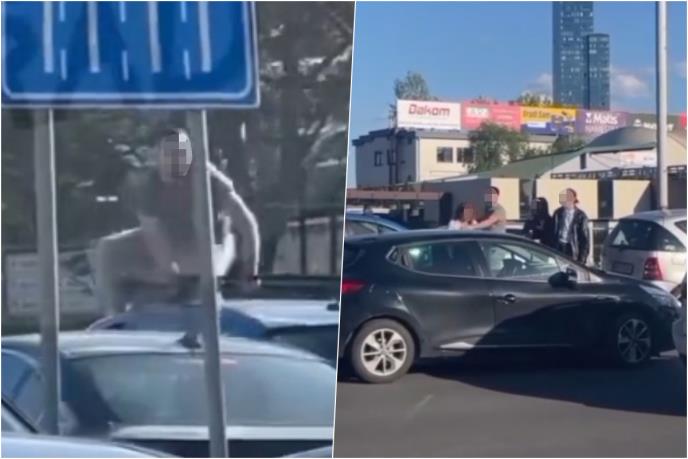 Kako prenosi mojbeograd_vesti, svemu je navodno prethodio blaži sudar automobila muškarca koji je skakao po haubi i vozača drugog vozila na koje se popeo besan mladić.