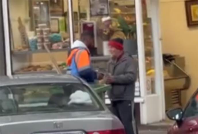 Na Instagram stranici "Moj Beograd", pojavio se snimak na kome se vide radnik Gradske čistoće i beskućnik ispred pekare.