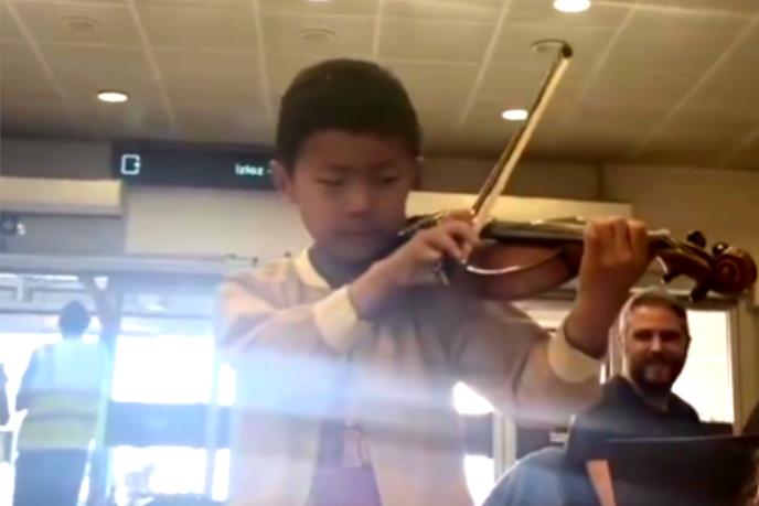 SNIMAK SA BEOGRADSKOG AERODROMA ODUŠEVIO SRBIJU: Dečak iz Kine izvadio violinu, pa zasvirao BOŽE PRAVDE (VIDEO)