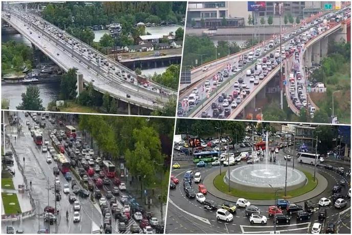 Kiša u špicu donela je velike gužve u saobraćaju na svim važnim saobraćajnicama u Beogradu, a naročito na mostovima.