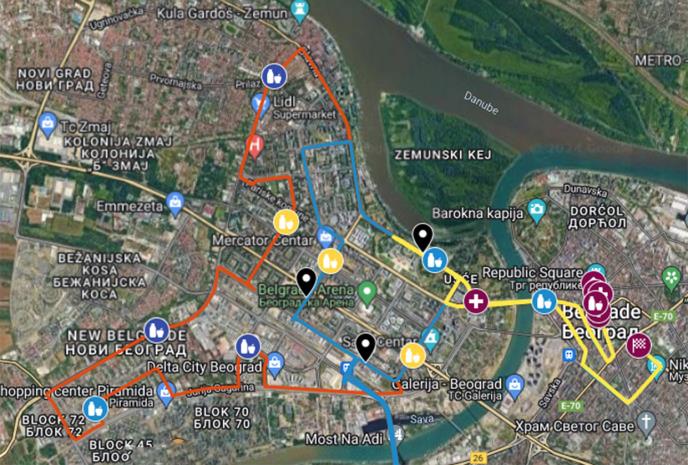 Od 07.00 do 14.00 časova, linija će saobraćati ulicama Cara Dušana, Džordža Vašingtona, 27. marta, Kraljice Marije, Ruzveltova, Bulevar kralja Aleksandra i dalje redovno;