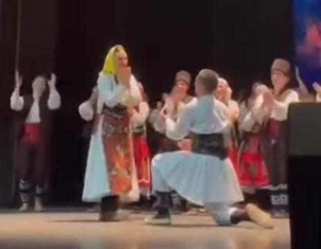 Dok su učesnici ovog folklornog spektakla dobijali aplauze za prikazano, jedan mladić je izašao iz "mase", pozvao svoju devojku i kleknuo pred njom.