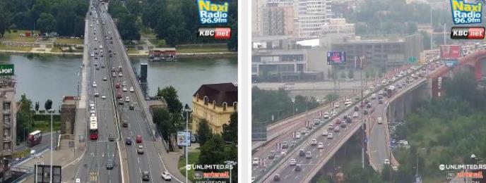 Za razliku od drugih, Plavi most ovog jutra deluje najopterećenije.