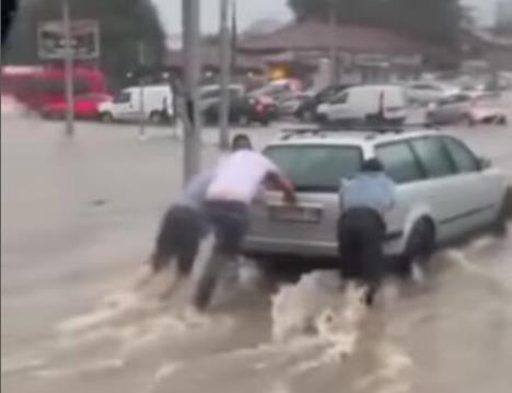 Nevreme je izazvalo velike probleme gotovo u svim delovima grada. Na društvenim mrežama pojavili su se snimci sa Autokomande na kojima se vidi da ljudi guraju automobil kroz bujicu.