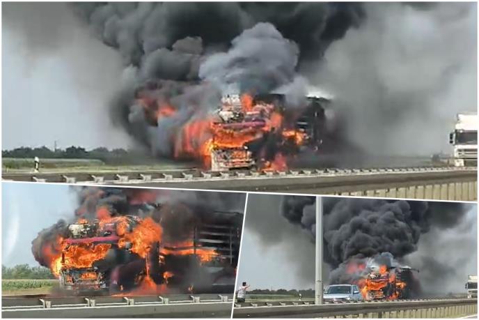 BUKTINJA NA AUTO-PUTU U BEOGRADU! Kamion se zapalio u vožnji! Zaustavljen saobraćaj, intervenisali vatrogasci (VIDEO)