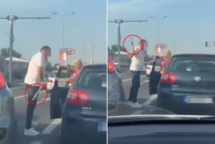 Na snimku vidi se muškarac sa palicom u ruci, koji drži vrata sa vozačeve strane, i momak sa suprotne, dok stoje kod automobila i učestvuju u žestokoj raspravi sa devojkom koja je unutra.