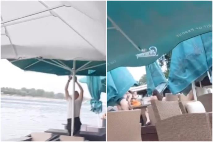 Na Instagram stranici Moj Beograd objavljen je snimak na kom se vidi kako vetar obara suncobrane na plaži, kao i "borbe" zaposlenih kafića da ih skupe.