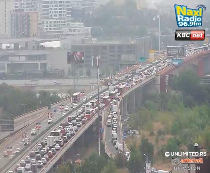 Formirana je kolona duž celog mosta, a vozila trenutno mile. Saobraćaj je usporen i zbog sudara koji se dogodio na mostu.