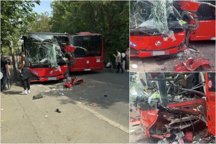 Na slikama se vidi da je jedan autobus potpuno smrskan s prednje strane.