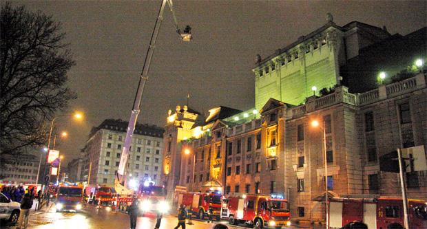 Macura je rekla da je Hitna pomoć dobila poziv sedam minuta posle ponoći da je izbio požar u Narodnom pozorištu i da su na lice mesta upućene dve lekarske ekipe.