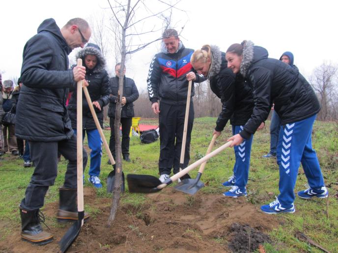 Zajedničkom akcijom najboljih srpskih rukometašica i Sekretarijata za zaštitu životne sredine na Adi Ciganliji zasađeno prvih 200 od ukupno 2.500 sadnica hrasta lužnjaka i poljskog jasena