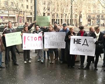 Građani koji su se okupili ispred Skupštine grada tvrde da se planom detaljne regulacije područja ismeđu kompleksa Pravno-birotehničke škole "Dimitrije Davidović" i ulica Petra Kočića, Trogirske i Tošin bunar predviđa da preko njihovih parcela prelaze saobraćajnice.