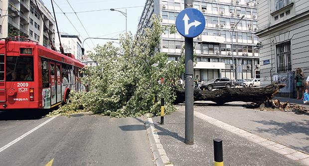 BEOGRAD - Zastoj u gradu zbog drveta koje je palo na ulicu.