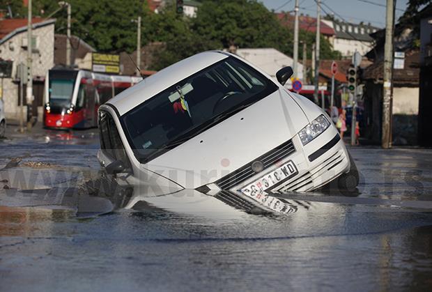 Juče je zbog pucanja vodovodne cevi kod Cvetkove pijace automobil propao kroz kolovoz, a saobraćaj je bio potpuno obustavljen.