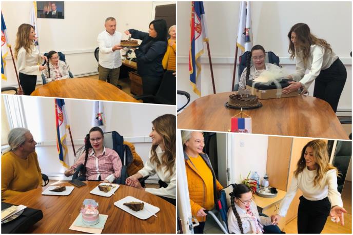 Predsednica Jakšić saznavši da će uskoro Milica koja boluje od cerebralne paralize napuniti 21. godinu, organizovala je svečani prijem u svom kabinetu na kome je devojčica došla u pratnji majke Zorice.