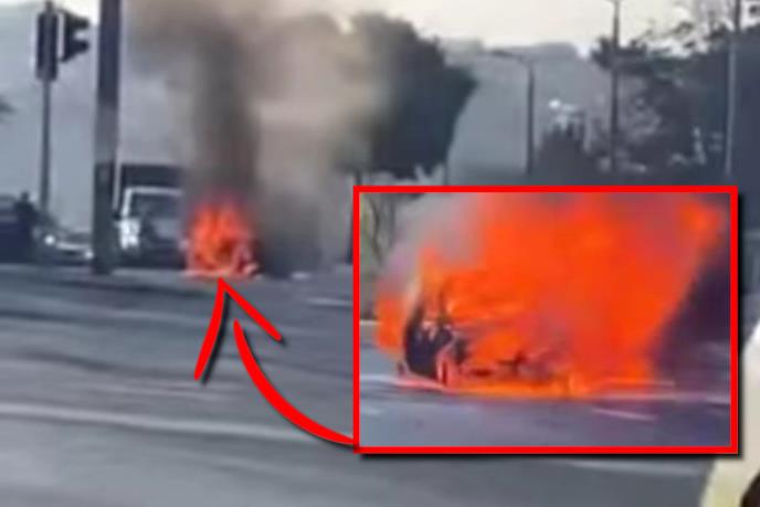 GORI AUTO NASRED PROMETNE RASKRSNICE: Dramatična scena u Šumicama, vatra potpuno progutala vozilo - Stvaraju se velike gužve prema gradu