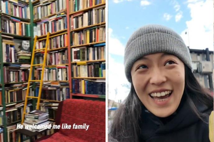 Ono što je neverovatno u ovom videu je činjenica da je pronašla smeštaj u - knjižari! Jedna knjižara koja prodaje polovne knjige toliko je neobična da ima krevet. Upravo to je mesto za koje je ova gošća rekla da ne postoji ni u Parizu.