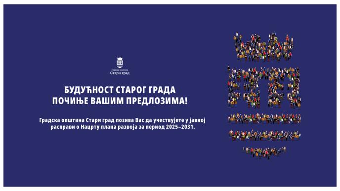 Svojim predlozima u vezi sa Nacrtom plana razvoja Gradske opštine Stari grad možete doprineti razvijanju naše opštine u narednih sedam godina.