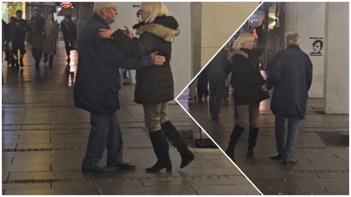 Novogodišnji praznici, okićene ulice, osmesi na licima ljudi verovatno su pozitivno uticali i na jedan sredovečan par koji je u Knez Mihailovoj zaplesao uz ulične svirače.