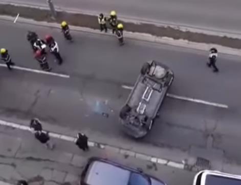 Prevrnuti automobil se i dalje nalazi na ulici.