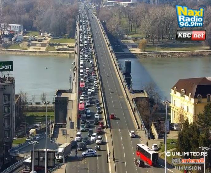 Kako se može videti na kamarama, velika kolona vozila stvorila se iz pravca Novog Beograda preko mosta, a vozila skreću u Pop Lukinu ulicu, jer je saobraćaj u smeru ka gradu obustavljen.