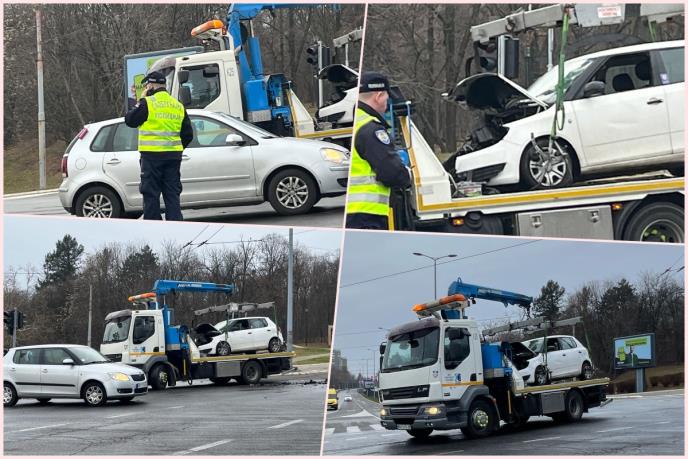 Prednji deo automobila je potpuno slupan i zgužvan i šlep služba ga je odvezla s lica mesta. Delovi automobila rasuti su svuda po kolovozu.
