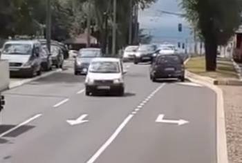 Jedan automobil snimljen je kako prelazi preko zelenog ostrva, ulazi u suprotan smer (takođe prometan) i nastavlja dalje ka Šumicama!