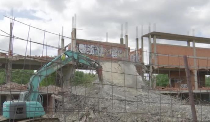 Gradnju akvaparka u Nehruovoj ulici kod savske obale u Bloku 44 započeli su pre 20 godina kompanija "Genel" iz Novog Sada i košarkaški klub "Mikele stars", a rušenje izgrađenih objekata započeo je novi investitor "River siti", na čijoj se gradilišnoj tabli navodi da će rušenje trajati do oktobra.